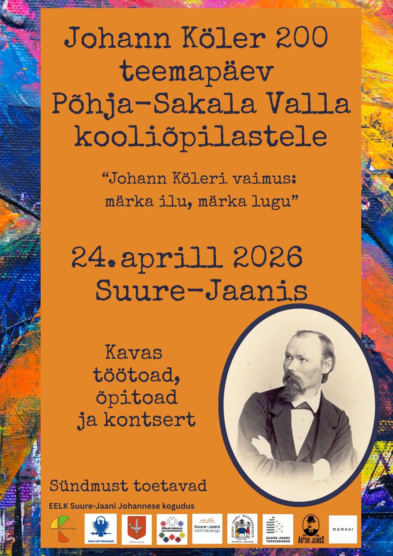 24. aprillil 2026 toimub Suure-Jaanis põnev teemapäev "Johann Köleri vaimus: märka ilu, märka lugu", kus kooliõpilased saavad osaleda töötubades, õpitubades ja kontserdil.