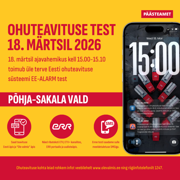 2026. aasta ohuteavituse süsteemi testid Päästeamet testib 2026. aastal ohuteavituse süsteemi EE-ALARM kolmel korral: 18. märtsil 10. juunil 14. oktoobril ...