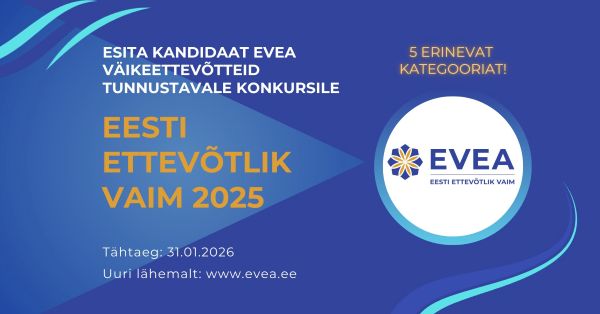 Eesti Väike- ja Keskmiste Ettevõtjate Assotsiatsioon (EVEA) kutsub esitama kandidaate konkursile „Eesti Ettevõtlik Vaim 2025" ning see on hea võimalus ka Põhja-Sakala ettevõtjatele oma tööd ja edulugu laiemalt esile tuua.