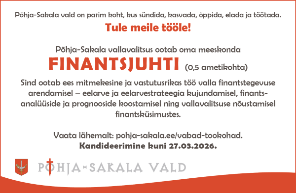 Põhja-Sakala Vallavalitsus kuulutab välja konkursi  FINANTSJUHI  ametikoha täitmiseks (töökoormus 0,5) Peamised ametiülesanded: valla finantstegevuse analüüs ja...