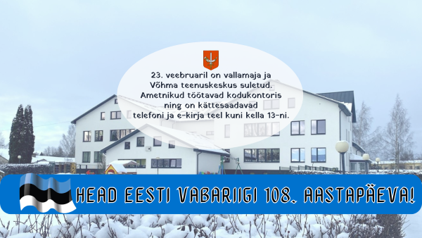 Vallamaja Suure-Jaanis ja Võhma teenuskeskus on pühade eelsel esmaspäeval, 23. veebruaril suletud. Ametnikud töötavad kodukontoris ning on kättesaadavad telefoni ja e-kirja teel kuni kella...