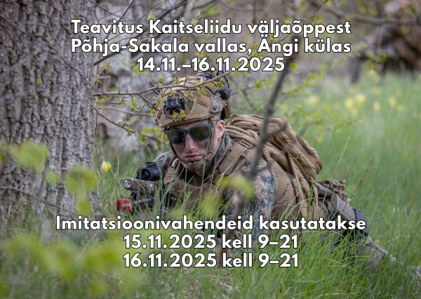 Ajavahemikul 14.11.–16.11.2025 toimub Põhja-Sakala valla territooriumil, Ängi külas Kaitseliidu väljaõpe.