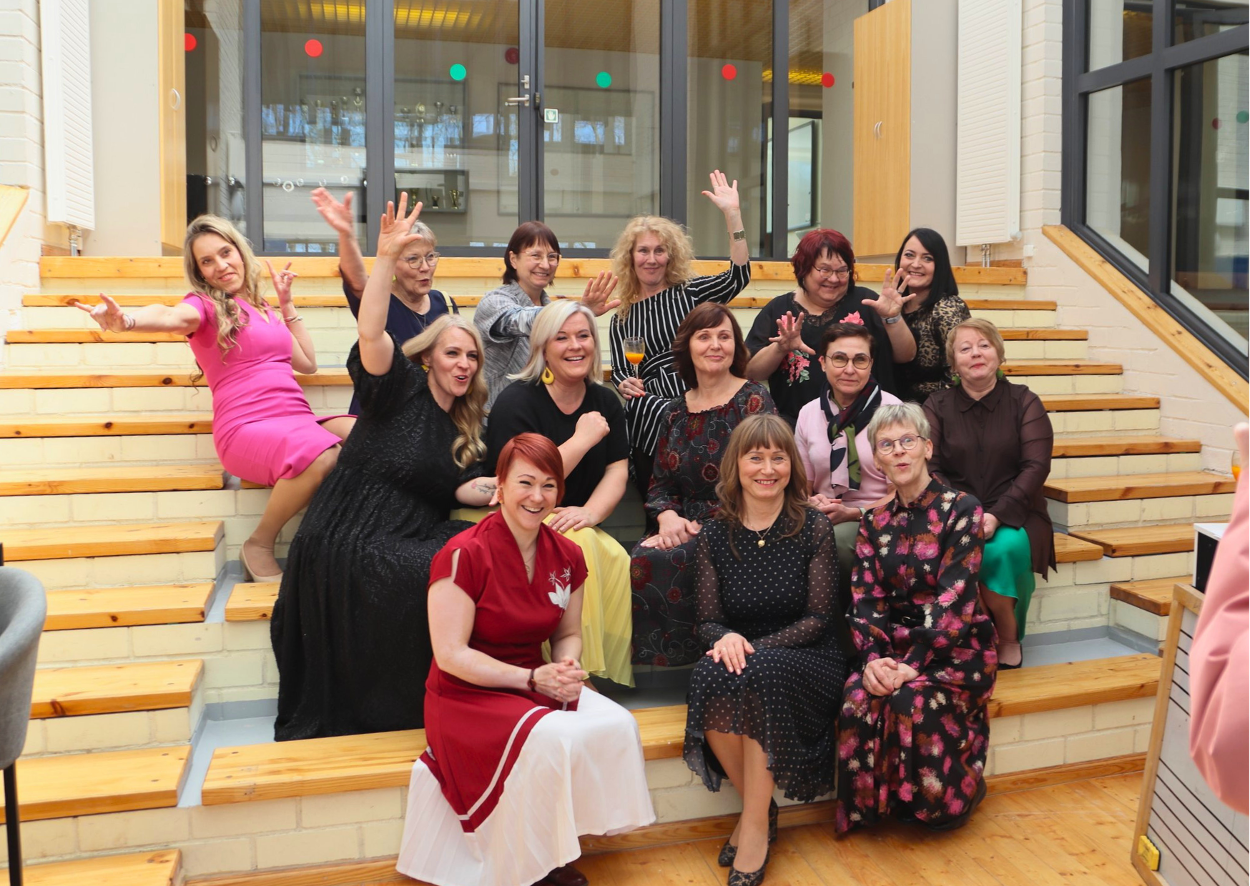 Olustvere kooli naispere – inimesed, kes hoiavad koolimaja südame tuksumas iga päev. Piduliku avamise külalised.