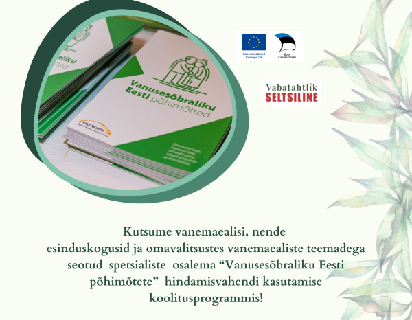 MTÜ Vabatahtlik Seltsiline kutsub osalema Vanusesõbraliku Eesti põhimõtete hindamisvahendi kasutamise koolitusprgrammis