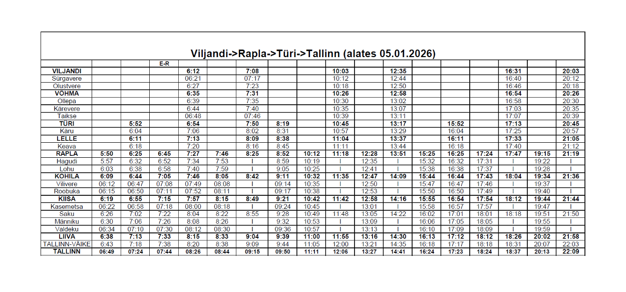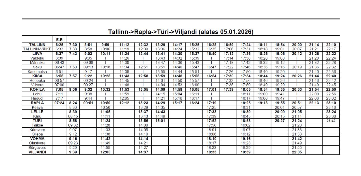 Elroni Edelasuuna sõiduplaan muutub alates 05.01.2026