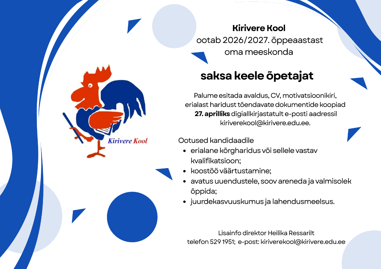 Kirivere kool otsib uueks õppeaastaks saksa keele õpetajat