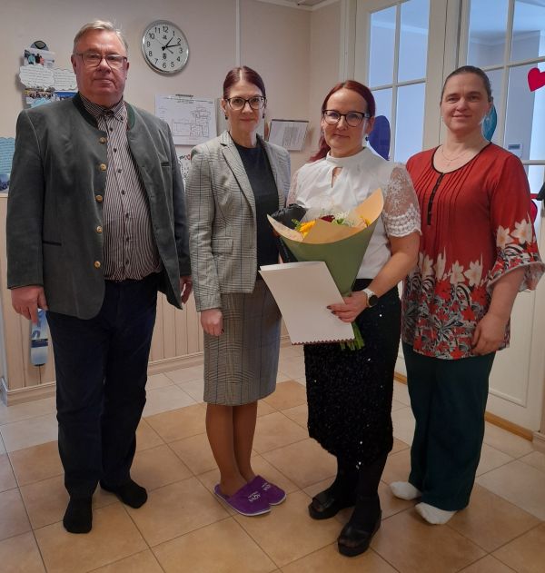 Avafotol vasakult abivallavanem Andres Vinni, vallavanem Tiiu Nõmmik, tööjuubilar Marlen Silm ning haridus- ja kultuurispetsialist Tiina Sünter.