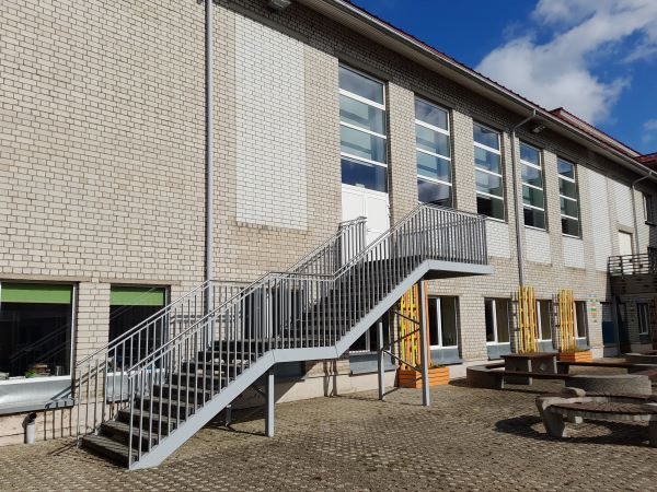 Sissepääs kooli siseõuest (pildil trepp ja uks), Lembitu pst poolsest küljest.