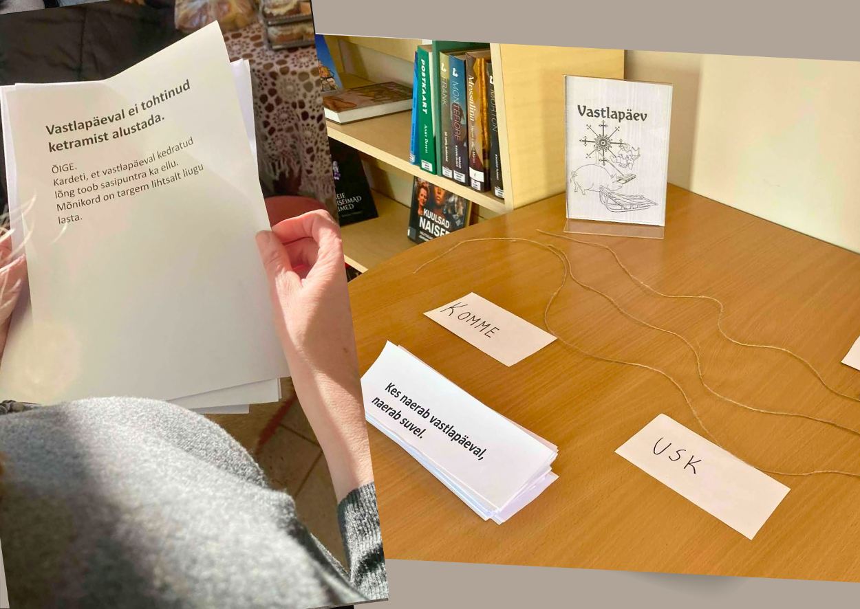Kõos tähistati vastlapäeva nii raamatukogus kui ka õues. Pärimusnurgas räägiti vastlakommetest ja -uskumustest, meisterdati nööbivurri ning mõõdeti linakiudu. Mesiroosi pop-up kohvikus sai nautida vastlakukleid, pirukaid ja kuuma teed.