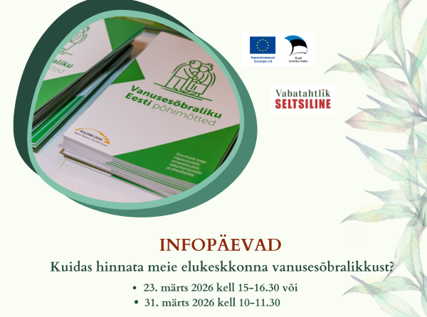 MTÜ Vabatahtlik Seltsiline kutsub osalema Vanusesõbraliku Eesti põhimõtete hindamisvahendi kasutamise koolitusprgrammis