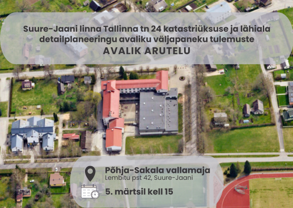 Suure-Jaani linna Tallinna tn 24 katastriüksuse ja lähiala detailplaneeringu avalik väljapanek toimus 17.09.–17.11.2025. Vallavalitsus ei korraldanud avalikku arutelu, kuna väljapaneku ajal...