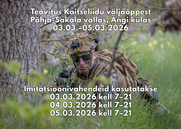 Kaitseliit annab teada, et viib 3.–5. märtsil 2026 Põhja-Sakala valla territooriumil, Ängi külas asuval Alt-Ördi kinnistul läbi väljaõppe. Väljaõppel osaleb hinnanguliselt 20 inimest....